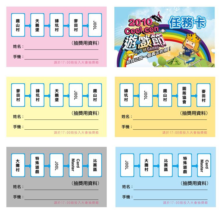 玩家到報到處完成 買票或是報到流程後,會得到一張任務卡